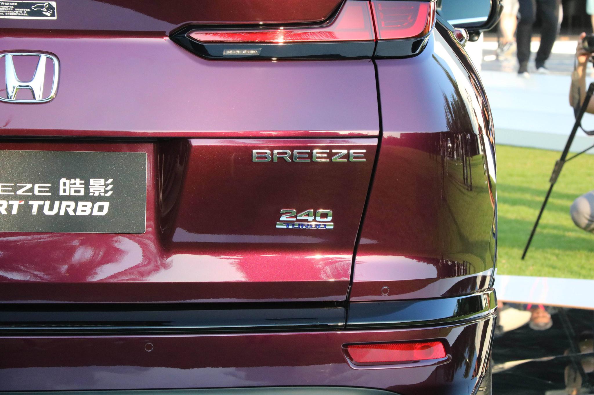 针对混动版车型,皓影BREEZE分别在外饰Honda的LOGO增加象征新能源的蓝底色,在左右翼子板与尾标处还贴有Hybrid字样标识,以表明其混动车型身份,而燃油车型则为240 Turb等传统字样标识。