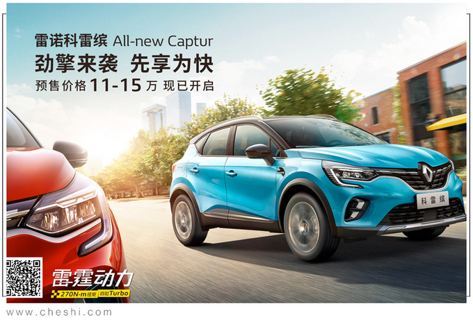东风雷诺全新SUV车型科雷缤在9月份举办的成都车展上正式发布,新车是全新一代卡缤的国产版本。目前科雷缤已经开启预售,预售价格区间为11-15万元,将于10月18日正式上市。新车基于CMF-B平台打造,采用最新的家族化设计语言,动力方面搭载与奔驰A级相同的1.3T发动机,传动系统匹配7速湿式双离合变速箱。