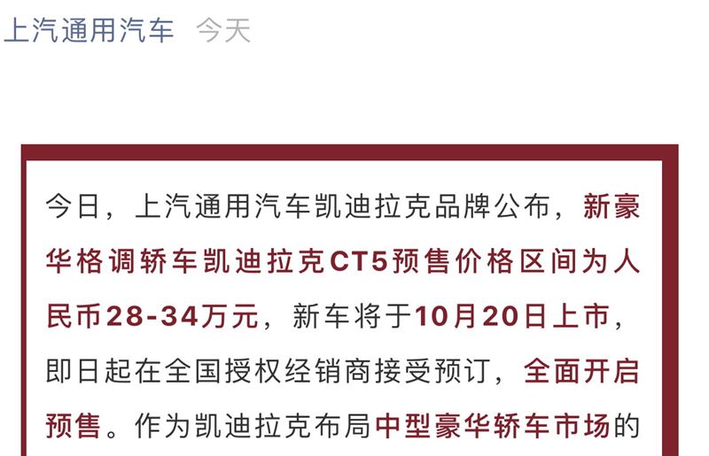 近日,上汽通用也正式对外公布了国产凯迪拉克CT5的预售价28-34万元,这个价格区间正好处于宝马3系 (配置|询价)、奔驰C级以及奥迪A4L的定价区域中。看来凯迪拉克已经做好了与BBA打擂台的准备,而CT5也将于10月20日在国内市场上市。