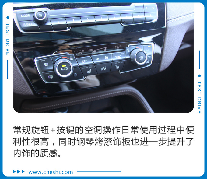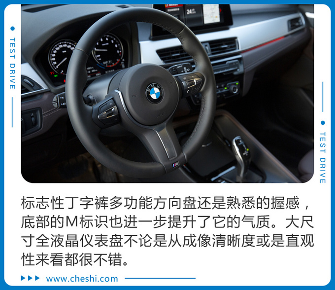 新车有三种动力模式可选,分别是经济模式,普通模式和运动模式,整体悬架调校趋于运动。经济模式起步,温柔给油的话,车辆加速十分线性,宛如一台商务座驾,可是一旦地板油,国产BMW X2就立刻如同换了一台车,瞬间的推背感会让你觉得仿佛推入了运动模式。爱信8AT的变速箱调校的非常不错,接近采埃孚的水准了。而启用运动模式之后,变速箱更加激进,动辄5000rpm的换挡转速让动力宛如大江大河绵绵不断。静止状态下给一脚地板油,瞬时的大扭矩使得车辆在起步阶段会伴有轮胎的啸叫和略微的方向盘甩动,很燥的感觉完全没有弱了X系列的名头。