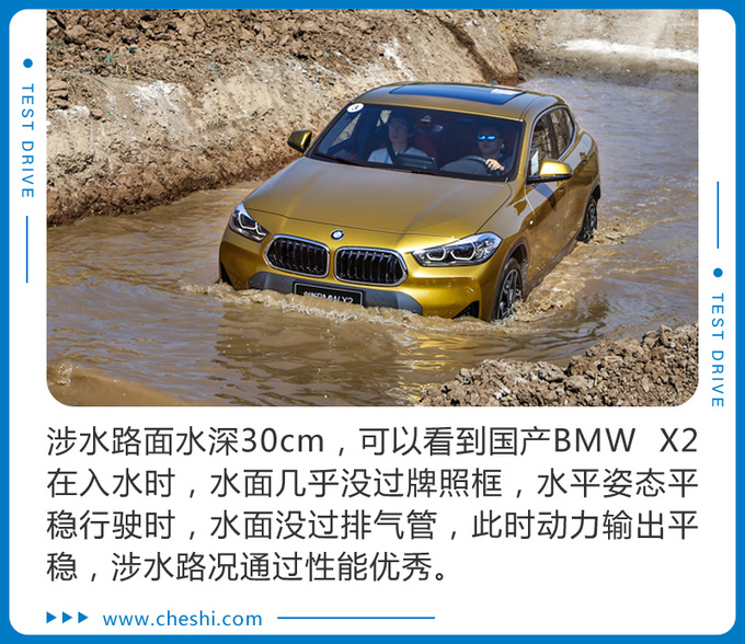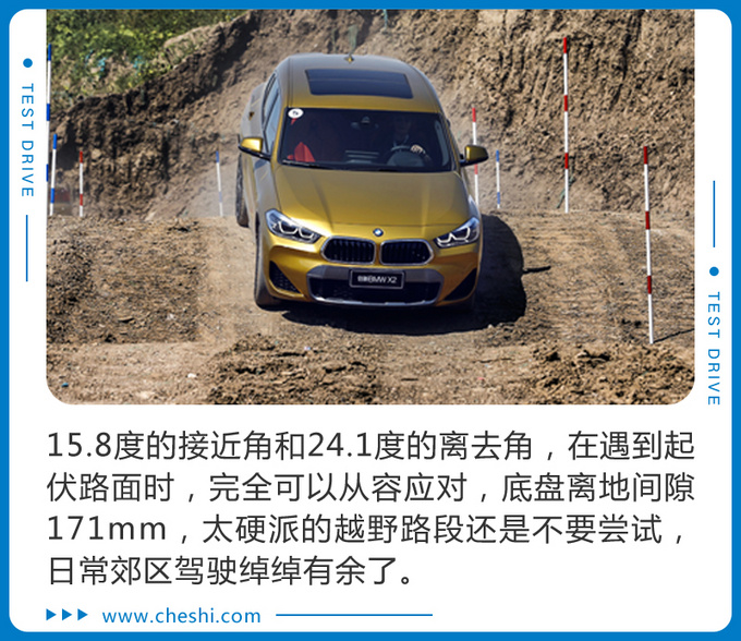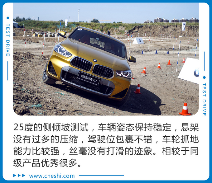 国产BMW X2作为一台城市性能车,其越野能力表现远超圆圆姐预期,低矮的车身,扁平比较低的轮胎怎么看都不像拥有越野能力的样子,但是经过场地测试,每一项目的通过能力都堪称同级完美,这点确实可以当得起SAC的称号。