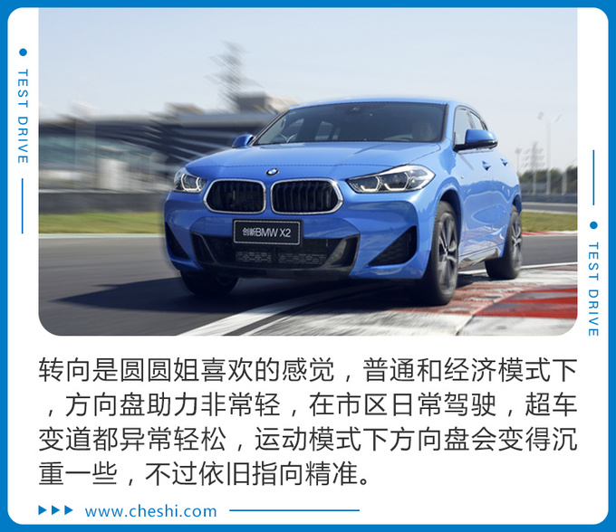 总结:作为第七款BMW国产车型,国产BMW X2的到来令宝马本土化车西瓜阵容更加强大。通过一天的试驾圆圆姐可以这样说,国产BMW X2绝对是一款能够宣扬年轻人个性时尚的车型,不论是它低趴吸睛的外观设计还是足够运动豪华的内饰氛围,又或是在赛道及越野路面的精彩表现,都足以满足当下年轻人对于自己爱车的各种需求。经过全新升级的宝马B系列2.0T发动机经过整体优化,在油耗、排放、降噪以及轻量化等多方面都得到了明显的提升。现在我们需要做的就是期待它在国庆假期之后的上市价格了,如果真的能做到诚意满满,相信很多年轻消费者都会把目光聚集在它的身上。