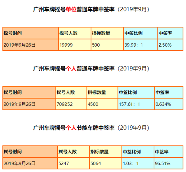 9月广州车牌摇号个人节能车牌中签率高达96.51%,单位节能车牌与上月一样为100%,减少节能牌照数额似乎并没消退消费者的斗志。以下图片均来自广州本地宝: