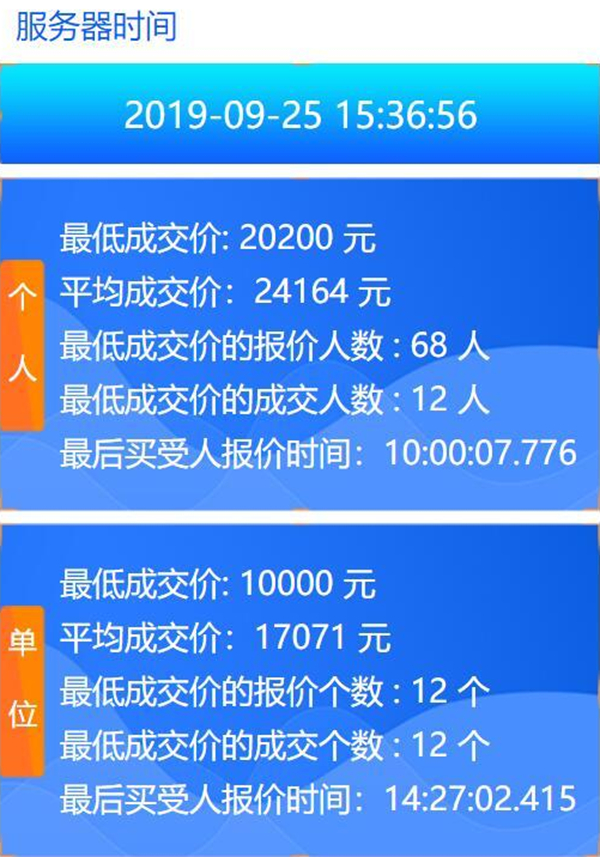 9月25日是指标增加后的第四次竞价。个人竞价方面,最低成交价为20200元,平均成交价24164元,最低成交价的报价人数68,最低成交价的成交人数12人。个人平均成交价比上月涨了385元,连续两个月出现小幅上涨,但仍比5月份下降了18682元。单位竞价方面,最低成交价为10000元,平均成交价17071元,最低成交价的报价个数12个,最低成交价的成交个数12个。单位车牌平均成交价比上个月下降了1471元。