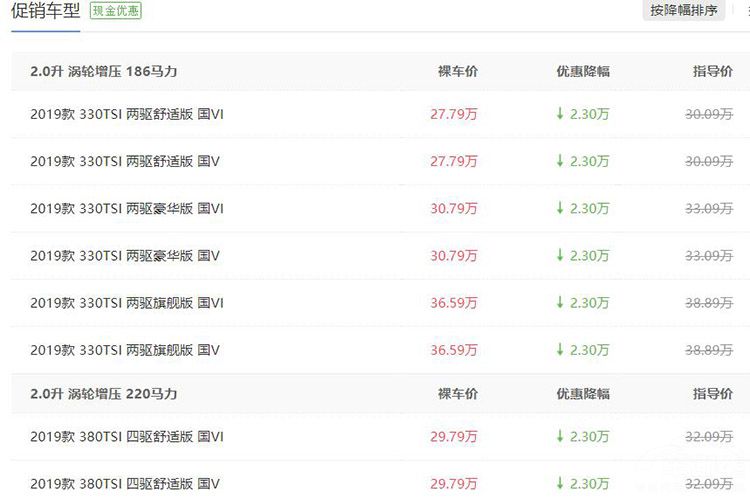 目前,途昂在重庆地区有2.3万元的优惠,330TSI车型最低仅需27.79万;380TSI车型最低也不到30万。同时,当前购车也无附加条件,车身颜色也可选择。