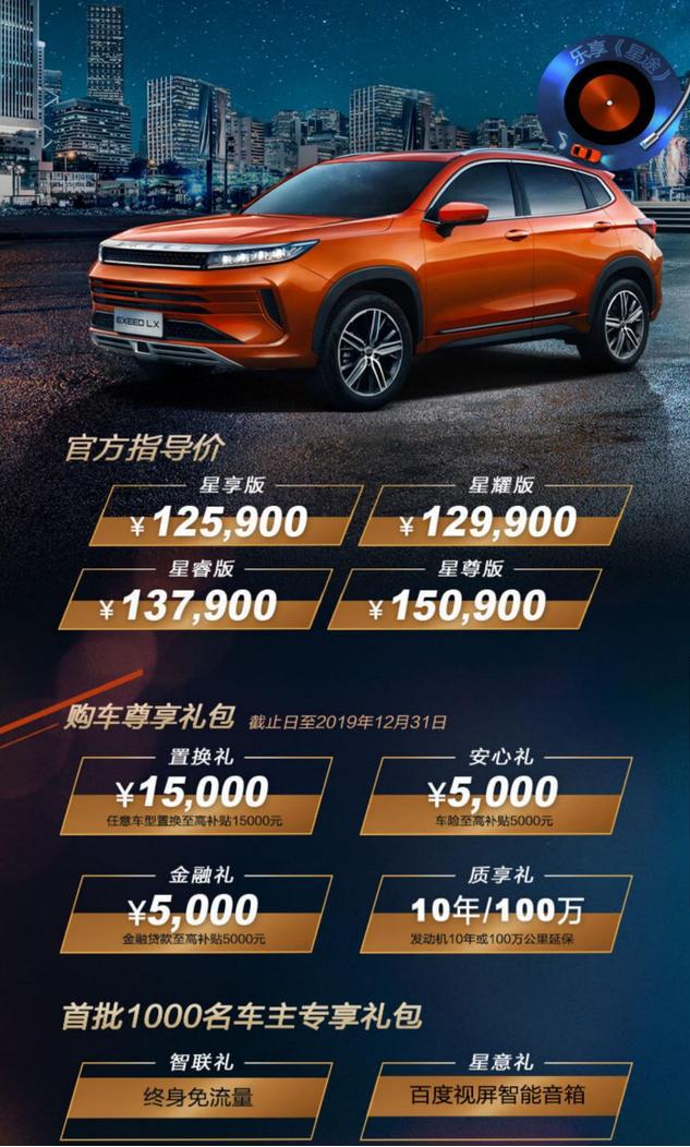 10月8日,星途品牌旗下全新SUV车型—星途LX (配置|询价)正式上市,新车推出搭载1.6T动力共计4款车型,售价万元,并推出多项购车优惠政策(详见下图)。12.59-15.09