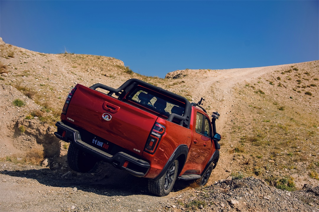 去阿拉善的中途路段,咱们来到了贺兰山脚下的一块砂石场地进行试驾体验。在这块场地上,有爬坡、沟坎以及平整的砂石路面,长城炮都能很好地完成各种高难度的越野项目。