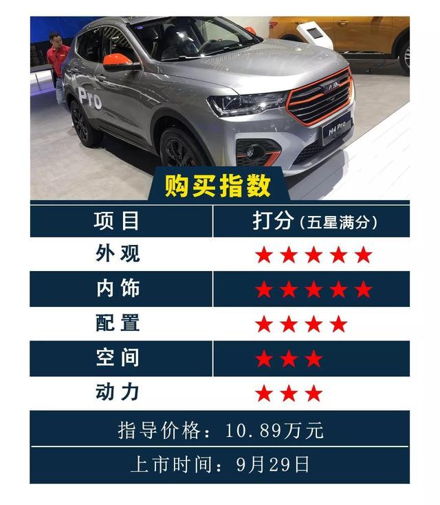 大咖点评:哈弗H4 Pro基于现款哈弗H4打造而来,外观的配色是其最大亮点,前脸采用了很多橙色的装饰条,卡钳和后视镜也采用了同样的颜色。另外,大灯和轮毂也进行了熏黑处理,看起来更加运动。在满是黑色、白色汽车的大街上,开这辆车可以让你吸引更多女孩子的目光。
