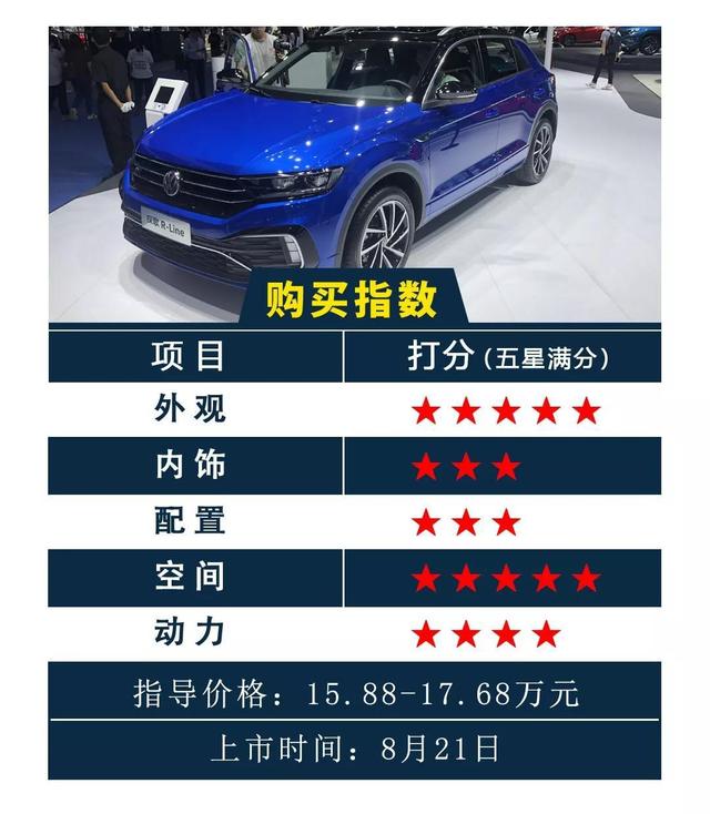 大咖点评:大咖非常喜欢的一款SUV,开起来动力不错,还有驾驶乐趣,最重要的是配色让人眼前一亮,因为内饰可以选和外观同样颜色的饰板,加长轴距后空间也是亮点。而R-Line版就是在普通版的基础上加上了性能套件,就像高尔夫R的感觉,并增加专属贝加尔湖蓝车身配色。此外,新车采用官方名为斯皮尔伯格和铃鹿两种轮圈设计。如果车尾的排气造型凶猛一点就更好了。