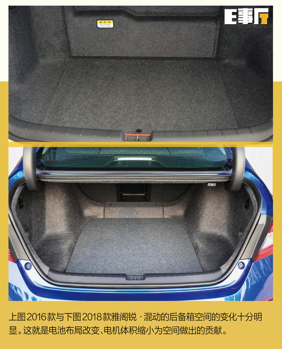 从空间角度上看,新技术通过将更大容量的电池组安排在底盘位置,也在一定程度上解决了消费者们担心的混动产品后备箱容积不足的问题。其实本田一直在混动方面增强轻量化、小型化的研究,在2018款雅阁 (配置|询价)混动车型上,我们就已经能够看到本田公司的诚意,与老款产品相比,2018款雅阁混动的后备箱容积就已经实现了399L至573L的飞跃。期待最能“偷空间”的本田在中国市场推出的PHEV车型的新空间能给我们带来惊喜。