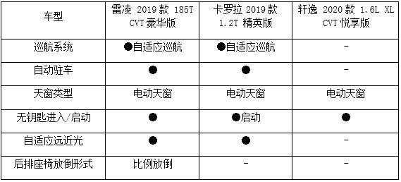 下面是配置比拼环节,以全新雷凌豪华版、全新卡罗拉精英版以及全新轩逸悦享版三款配置车型来对比,因为三者价格比较相近。