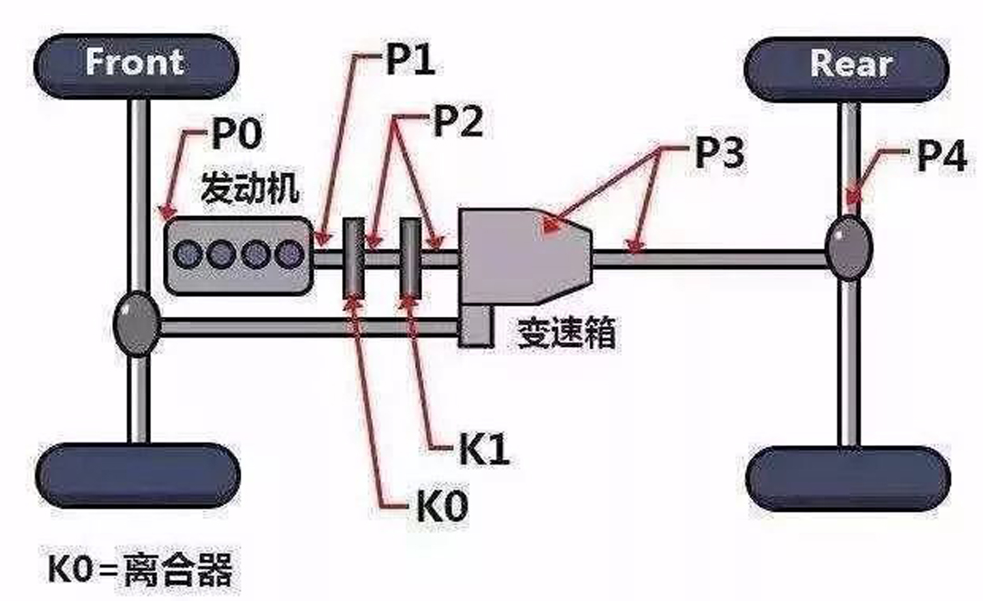 一般来说,在混合动力系统中根据电机的位置可以分为P0到P4四种模式,通过不同电机的组合出现不同的模式,但大框架是一致的。混动系统最终目标是通过电机去弥补汽油机效率较差的工况,例如拥堵时反复启停工况;同时在汽油机效率较高的时候使用汽油机驱动,达到节省燃油的目的,具备长距离出行的能力。
