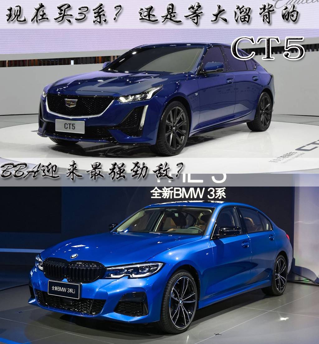 一直以来,豪华品牌中型轿车在国内都有着大量的购买群体,,"BBA"在老百姓心目中似乎也成为了豪华车非"BBA"不买的节奏。不过,今年想买豪华品牌中型车的朋友们有福了,不光有上市不久的全新宝马3系 (配置|询价),还有将于10月底上市的凯迪拉克全新CT5 (配置|询价),凯迪拉克 CT5在今年成都车展上首次亮相就给人非常强烈的视觉冲击力,引起了强烈围观。那么,这款车与国内标杆中型运动轿车宝马3系相比谁能更胜一筹呢?