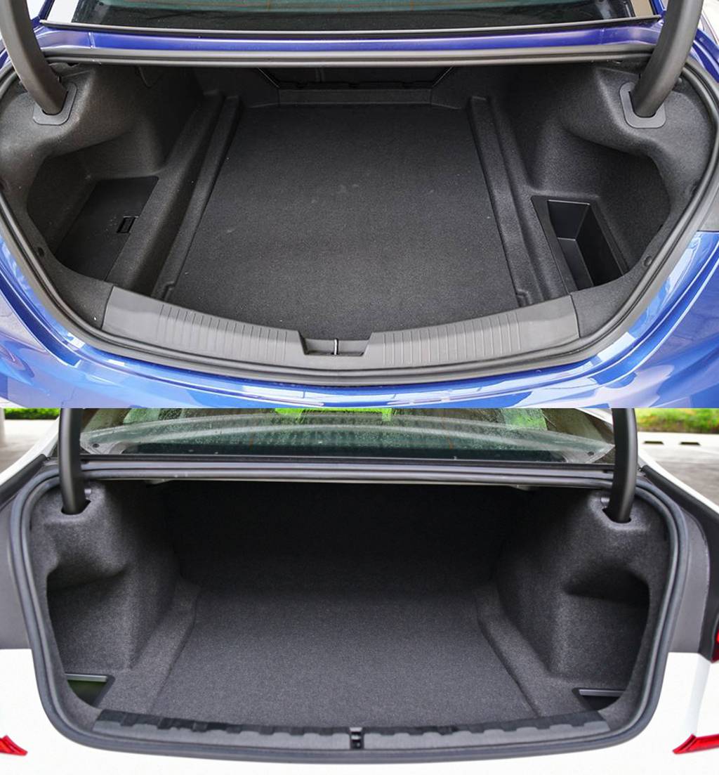 车尾部分,两者风格有些相近。CT5整体尾部造型略显圆润,短促有力,直列尾灯很有标识性,“倒L”造型颇有大哥CT6 (配置|询价)的意味。3系尾部则更加立体饱满,尾灯采用了宝马最新家族式设计,凹凸造型更为立体,比上一代好看很多。两者均在车尾加入了小鸭尾,CT5采用与车身同色的设计,且上扬幅度比3系略大;3系则采用黑色饰条装饰,更为内敛。此外,两车均配备双边共两出排气空,CT5采用了银色镀铬装饰,更为年轻引人注目。