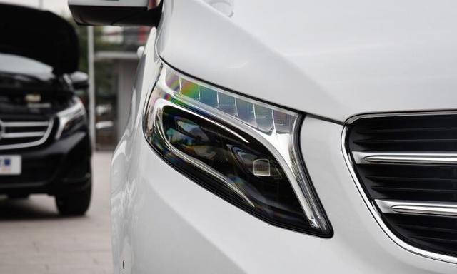 外观方面,奔驰V级 (配置|询价)采用了奔驰品牌众多现款车型上的家族式设计。相比起老款的唯雅诺来说看上要更加年轻和高档,不再是那个古板商务气息浓郁的“方盒子”,无论是商用还是家用都毫无违和感。特别是LED光源的前大灯组更是点睛之笔,复杂的灯腔内部构造,除去提高档次感外,在功能上也是十分强大,能够根据路况的不同自适应提供多种照明模式。
