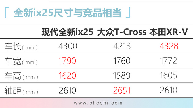 ix25是北京现代主打年轻市场的小型SUV,在售款车型标准的多边形格栅以及下杠三段式布局在当时属于主流设计,但随着探歌以及C-HR (配置|询价)等全新产品的上市,现款ix25设计就略显平庸。而新一代ix25主要也在外观上下了功夫,前格栅与新途胜 (配置|询价)、胜达 (配置|询价)极为相似,并配备了分体式大灯组,日间行车灯被分为三个部分。车侧线条平缓,B、C柱使用灰色、银色涂装后,形成悬浮式车顶效果。