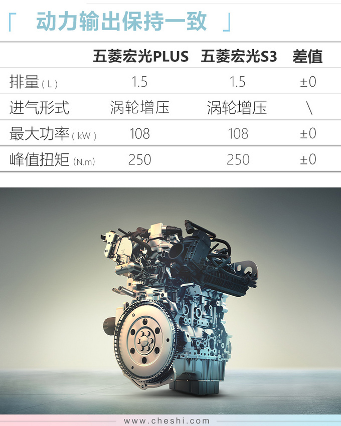 车身尺寸方面,五菱宏光PLUS比现款五菱宏光S3 (配置|询价)更大。动力方面,新车搭载一台1.5T涡轮增压发动机,最大功率108kW,峰值扭矩250N·m,百公里综合油耗低至7.3L,传动系统匹配6速手动变速箱,满足国六排放标准。另外,新车提供“2+2+3”、“2+3+3”两种座椅布局,后续还将推出“2+3”的五座版本。