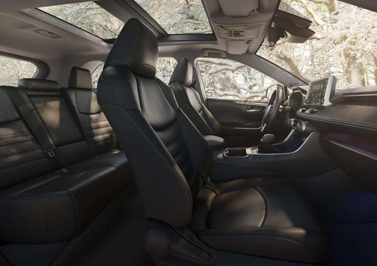 第五代RAV4提供了四款预售车型,其中包含三款燃油版车型和一款混动车型。从官方提供了信息来看,第五代RAV4配备了18英寸轮圈、双边共两出镀铬排气、鲨鱼鳍天线、LED光源的自动大灯+日间行车灯+尾灯、前雾灯、天窗、外后视镜电折叠+加热,以及无钥匙进入等。而高配车型在此基础上增加了全景天窗、车顶行李架、投射式LED大灯等。安全配置方面采用了丰田智行安全TSS 2.0系统,包括带行人监测的预碰撞安全系统、支持多种速度区间的自适应巡航、带跟车行驶功能的车道循迹辅助系统、远光灯自动调节系统。与此同时,7安全气囊(双前囊+双侧囊+双侧帘+主驾膝部)、全景影像、胎压监测、车身稳定系统、上坡辅助、陡坡缓降、牵引力控制等均为标配。