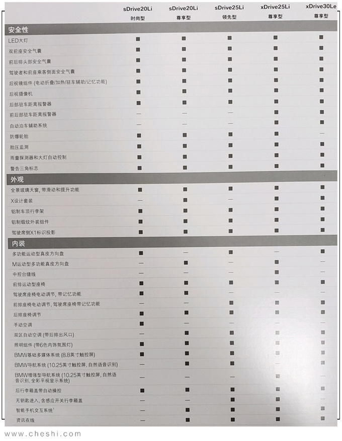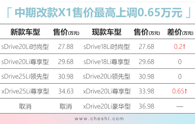 此前宝马国产中期改款X1的售价信息已经曝光,新车共推出4款配置车型,售价区间为27.88-34.63万元,其中入门版和顶配版车型价格相比现款分别上调0.2万元、0.65万元,将于10月份正式上市。近日网上车市获得一份中期改款X1的完整配置表,新车的1.5T和2.0T两驱车型换装7速双离合变速箱替代现款的6AT变速箱。