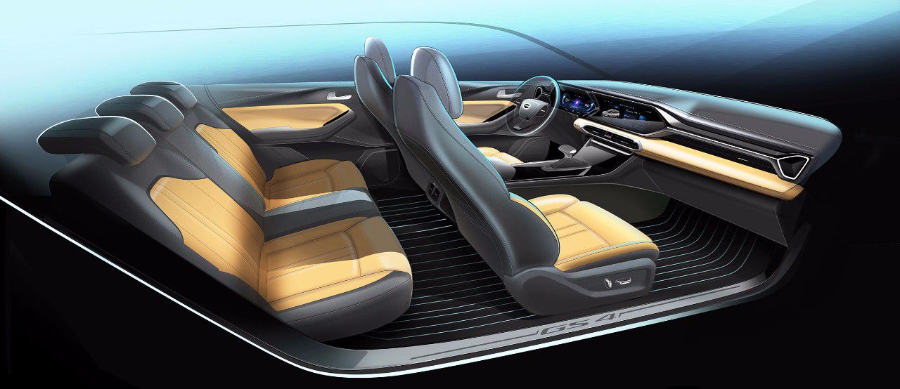 内饰部分,全新一代传祺GS4暂时没有公开官图,但是从设计图来看,也是向年轻化靠拢,能给人在感官上带来更为刺激的感受。一方面,新车中控屏和仪表盘采用贯穿设计,副仪表板采用航空仪表造型,整体科技感强烈,视觉效果突出;另一方面,新车以高亮镀铬装饰条在主驾驶和副驾驶区域形成双“X”造型,和新车前脸“X”造型呼应的同时,营造出年轻时尚的氛围。