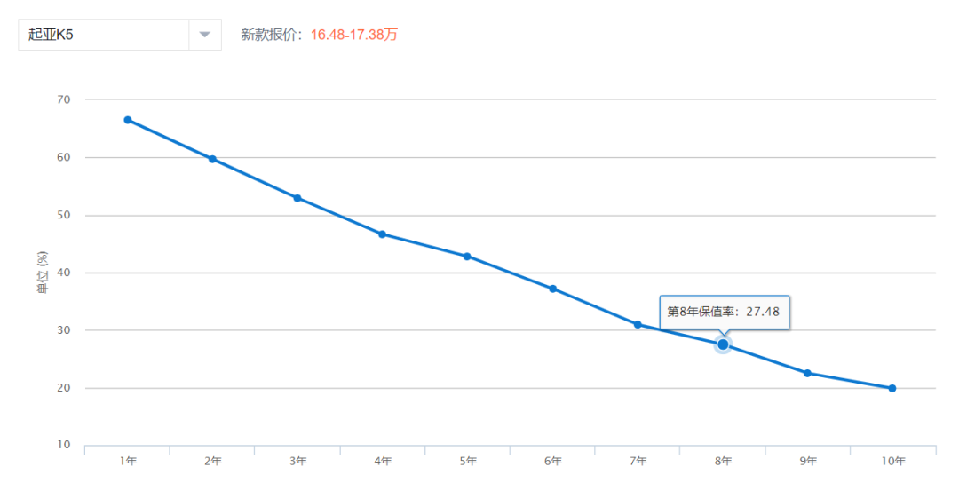 例如雅阁 (配置|询价)和起亚K5 (配置|询价)两款中级车,保值率的差距从第一年的14.5%,到第八年已经缩小至7%。二手车的价格相比新车已经大幅降低,用了几年以后的再转手,价格再往下掉的空间会越来越小,一直所追求的高保值率意义便变得不再那么重要。