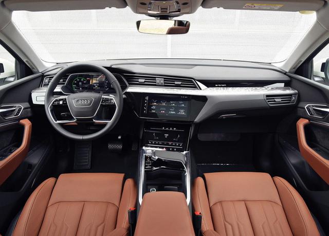 其次内饰方面,奥迪e-tron的布局设计与奥迪最新几款新车没什么区别,三块大屏的设计似乎更符合e-tron的身份。同时,新车在做工和用料方面也十分考究,仿金属拉丝工艺的中控面板装饰条依旧拥有良好的视觉效果,整体优秀的装配工艺和旋钮等细节处都保持着奥迪一贯的高水准。