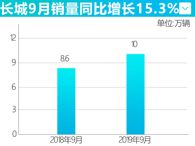10月11日长城汽车公布了最新销售数据,9月份长城汽车销量达到100,019辆,同比增长15.3%,这也是继1、3月后长城年内再次突破10万辆大关。其中主力品牌哈弗销量达到75253辆,较去年同期增长22.14%,创下年内销量增速新高,F系、H系、M系均有不错的市场表现。