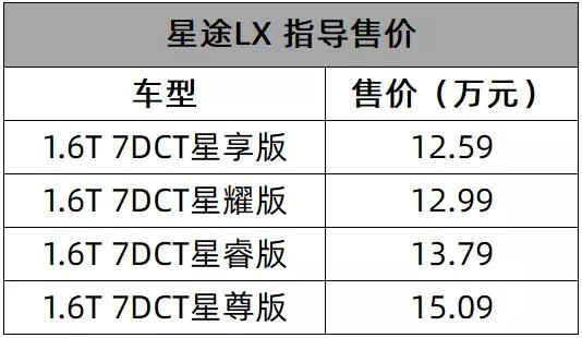 搭载的是1.6T发动机,最大马力197匹,最大扭矩290牛·米,匹配7速双离合变速箱。相比同价位级别竞争对手搭载的1.5T发动机,星途LX的动力还算有一定的优势。