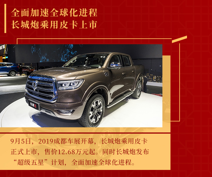 除此之外,长城汽车倾情助力电影《中国机长》,致敬中国民航英雄,并携旗下WEY VV7、哈弗F7在片中全方位展现了“中国智造”的魅力风采。国庆期间,长城汽车携旗下长城炮越野皮卡、WEY VV7 PHEV、哈弗H9改装版等多车型,征战2019阿拉善英雄会,掀起外界对长城汽车的高度关注潮。