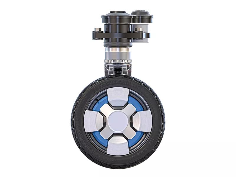 Protean360+的工程师需要考虑的一个重要问题是保护电缆。从下部旋转接口,电机、液压装置和气动行驶高度控制装置的控制电缆沿模块臂向下走行,连接集线器内的第二静态接口和车轮电机单元。当臂模块旋转360度时,整个组件组随之旋转。因此,连接装置和电缆不会扭曲或产生应力。