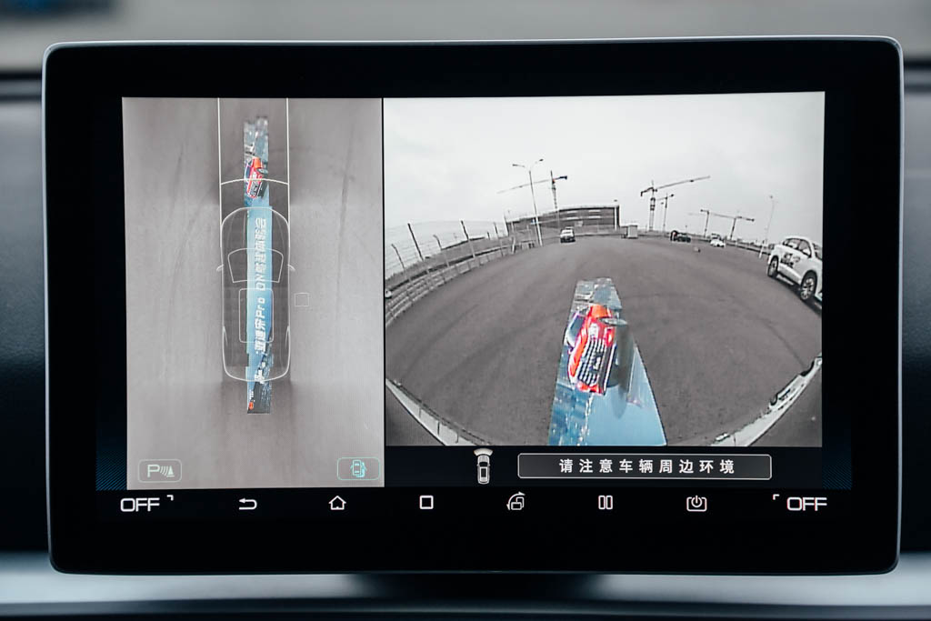 比亚迪宋Pro DM车型还配备了全息透明影像系统,在原有的360度全景影像系统的基础上增加了透明底盘功能。在体验环节中工作人员将前挡风遮住,仅依靠全息影像系统绕井盖的项目。仅通过车内中控屏显示的影像即可轻松通过。该功能其实利用了前置摄像头的影像延时功能,从中控屏幕中显示出来只有车辆的轮廓,不仅实现环视四周、还可观察车底,大大提升了行车安全性也为驾驶者提供更好的便利性。