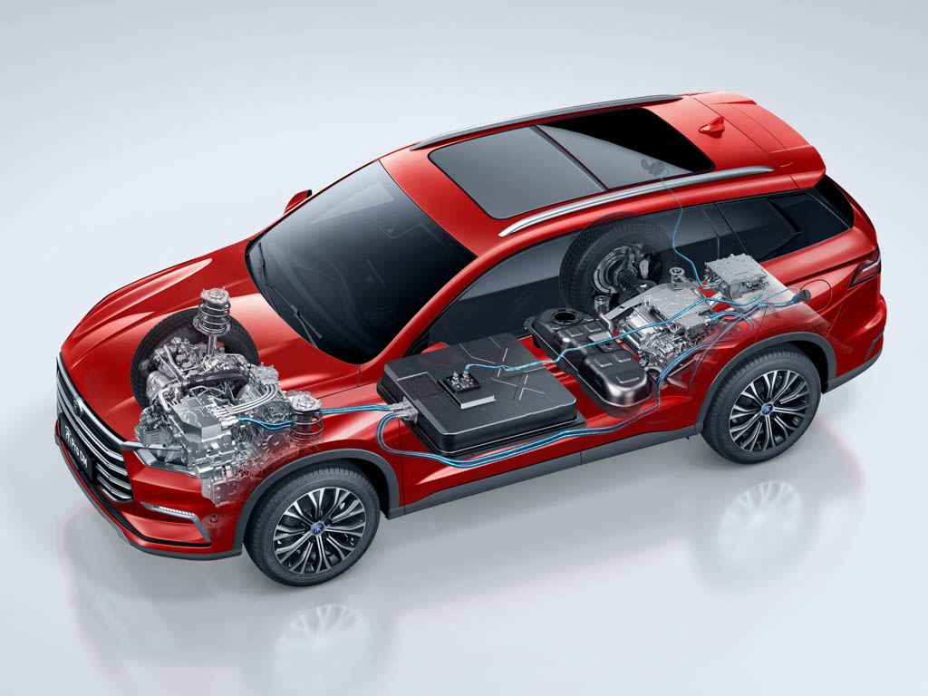 我体验的车型为1.5T四驱性能版旗舰版,采用双擎四驱动力架构,该车前端搭载了一台1.5T涡轮增加发动机,最大功率为118kW,最大扭矩为245Nm。与之匹配的是一台 6速双离合变速箱。后轴配备了一台永磁同步电机,在混动模式下,综合最大功率为238kW,综合最大扭矩为525Nm,百公里加速仅用6.5s。
