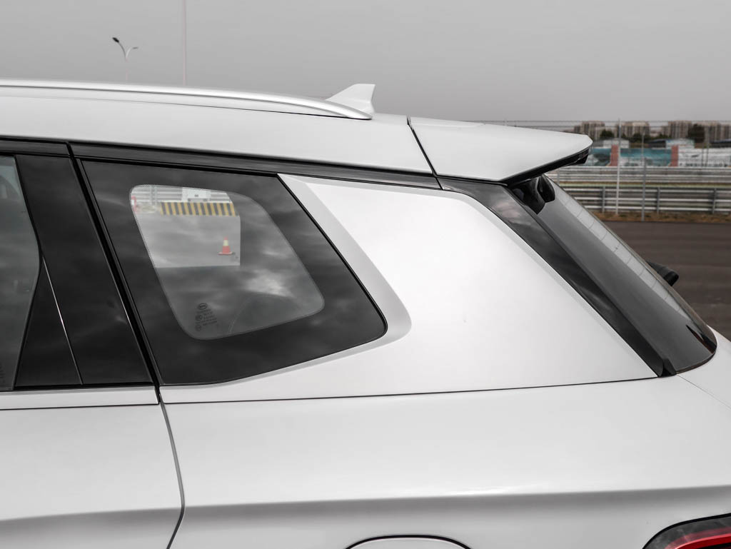 来到车身侧面,宽大的D柱采用了亚光银色装饰条,打造出悬浮式车顶的效果,在配合上车尾顶部的小尾翼设计,让整车更加凸显运动感。车身尺寸方面,新车长宽高分别为4650/1860/1700mm,轴距达到了2712mm。最后看车尾部分,尾灯采用时下较为流行的贯穿式尾灯设计,这样的设计不仅提升了美感,也进一步拉伸了车辆的横向视觉效果。尾灯的四“龙爪”造型与头灯形成了很好的呼应,并且点亮后具有较高的辨识度。