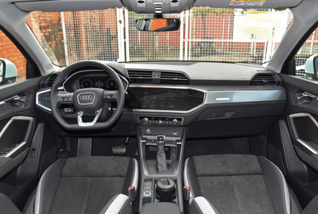 进入车内,奥迪虚拟座舱对比其他品牌胜在了远远领先的科技感。奥迪Q3标配两块液晶大屏,分别是液晶仪表以及中央液晶大屏。其中液晶大屏被包裹在八边形主操作面板上,与前格栅相互呼应。虚拟液晶屏显示效果出色,内容及其丰富,导航、娱乐等信息都能飞屏过来,让驾驶不分心。