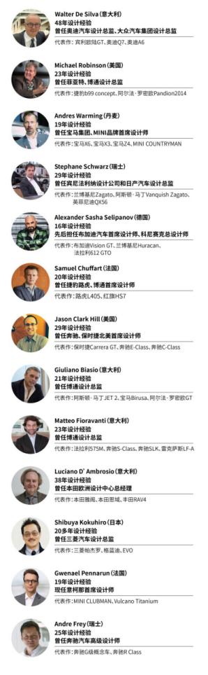 也就是说,恒驰要想确保颜值惊艳世界,就必须要由全球汽车造型设计界经验丰富的巨擘来操刀。下足功夫欲在新能源汽车行业大展拳脚的许家印,对此显然有着深刻的认识。此次签约的15位大师,就是恒大从全球50位大师的150个设计方案中层层筛选而来。入选的15位大师均是来自美国、德国、法国等汽车工业强国的汽车造型设计大咖,拥有数十年设计经验,为奥迪、大众、宝马、奔驰等全球知名车企打造出无数经典车型。