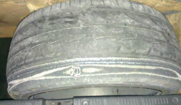 2、轮胎胎面两侧磨损严重,胎缘磨光