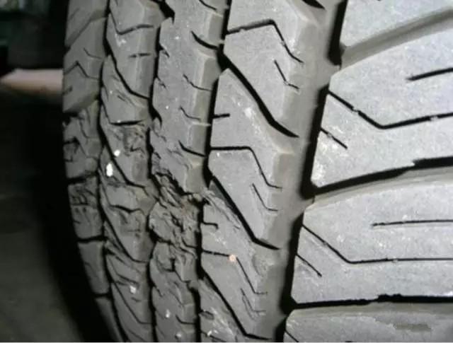 1、轮胎胎面中部磨损严重,胎纹磨光