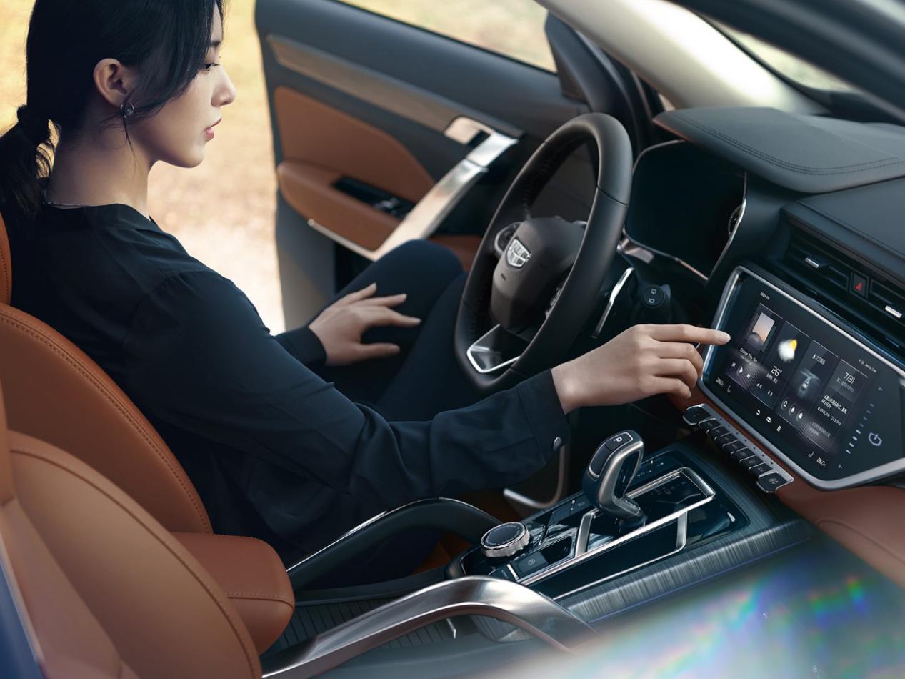 相比外观方面的进化,新车在内饰方面的进化更让人惊喜。其采用了全新的设计手法,中控台十分简洁并加入了更多的带有缝线工艺的真皮包裹,配合全新的嵌入式液晶大屏、电子档杆,整个内饰比博越看上去更加精致上档次,当然也要比那些合资品牌SUV看起来有面子。