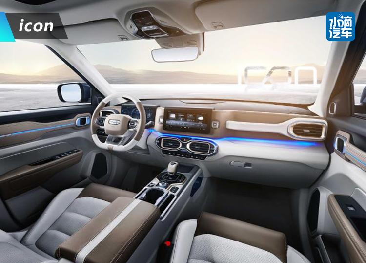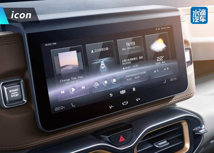 内饰方面,新车最大程度地保留了Concept icon概念车的设计元素,内饰采用白色、卡其色、黑色三种颜色的撞色设计,观感轻奢。同时,icon在空调出风口、挡把、门板处设有形似“∞”的设计,造型平直,折角圆滑,从而与官方宣传未来感做到很好呼应。此外,该车采用了10.25英寸全液晶仪表以及10.25英寸悬浮式中控屏,并与中控造型完美融合,相互重叠,带来了足够新鲜的视觉感受。