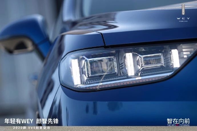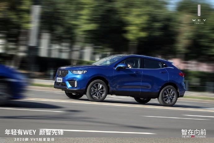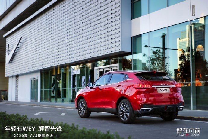 外观方面,2020款VV5采用了全新造型的LED大灯组、尾灯组和雾灯,除此之外的变化在于对现款车型上翘的前唇样式进行了修改,变得更加平整,进气格栅还是家族式的大尺寸六边形蜂窝状,非常犀利,整体车头的辨识度可以说非常高;车身侧面与现款变化不大,延伸到D柱的镀铬饰条非常灵动,配合19寸的双五辐轮毂,运动感十足;尾部最大的变化莫过于将原先凶狠、夸张且富有争议的“四出”排气进行了修改,2020款的造型设计更加含蓄,配合镀铬装饰更加精美,符合大众审美。内饰与老款的最大区别在于换装了主流的12.3英寸中控显示屏,整体造型科技感十足,符合其自身定位。车身配色方面,新车将提供马尔斯红、施华洛蓝、炫晶黑、雪域白、艾尔斯灰五种颜色。