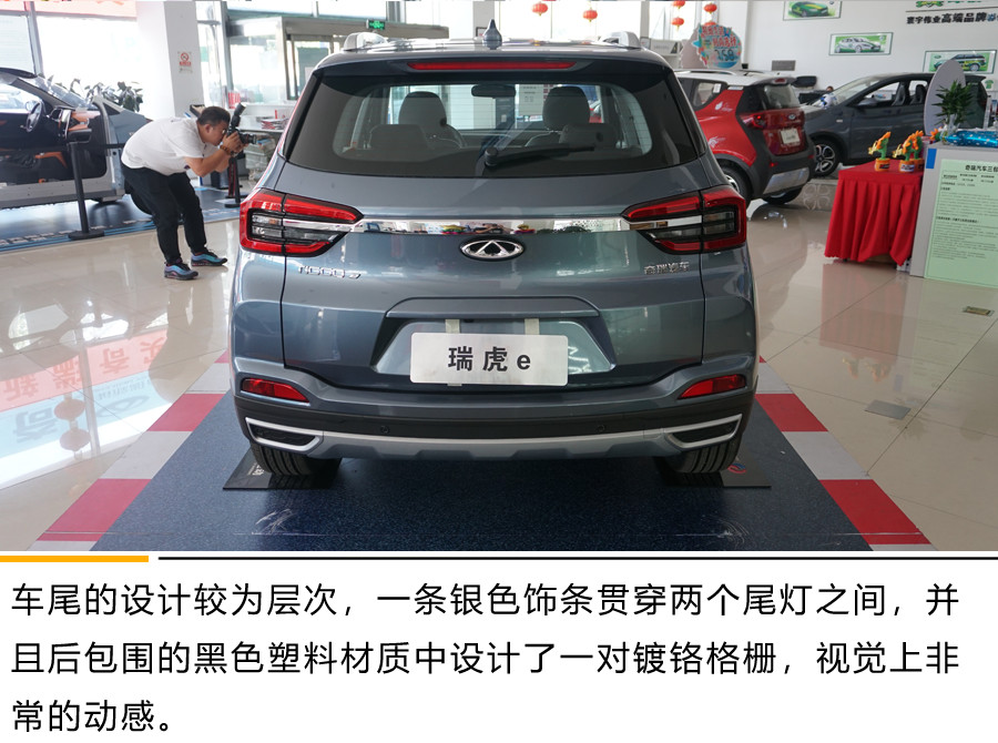 外观方面,宋Pro EV延续燃油版的设计,采用最新Dragon Face 2.0的家族设计,灯组内采用LED光源,而车尾部分采用贯穿尾灯设计,整体不仅时尚,还突显出了自身的高端豪华气质。而瑞虎e继承了奇瑞瑞虎家族的造型理念,采用Cherry Design流水造型,前脸为纯电动车型独有的封闭式格栅,配备有LED日间行车灯,中网采用点阵式设计。比较吸睛。车头中间一条镀铬装饰条将两侧头灯连接起来,和下方的镀铬装饰条、银色护板搭配,更有时尚动感的视觉冲击感。