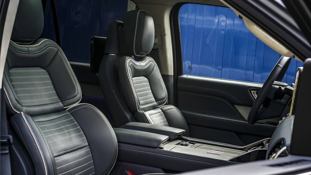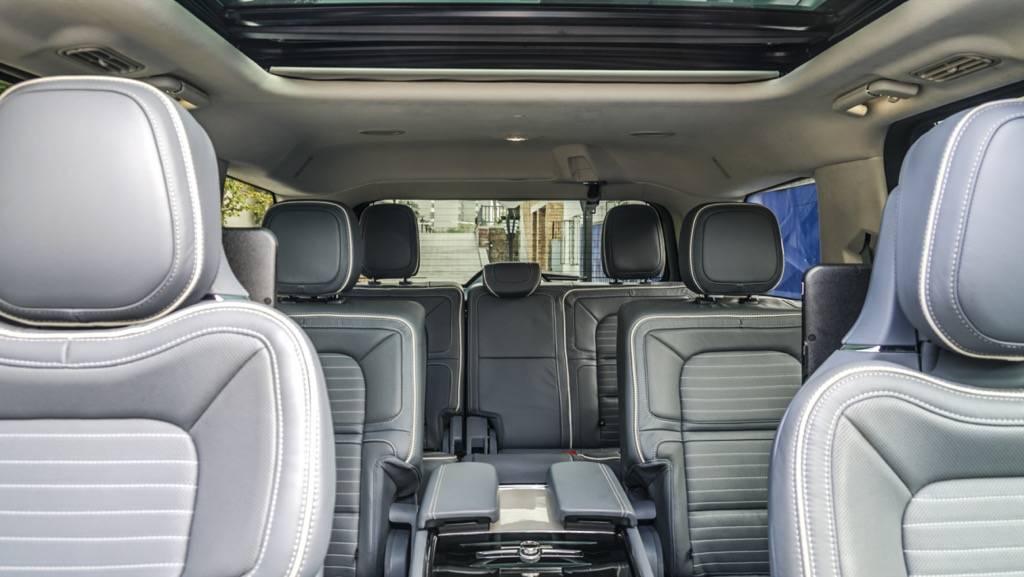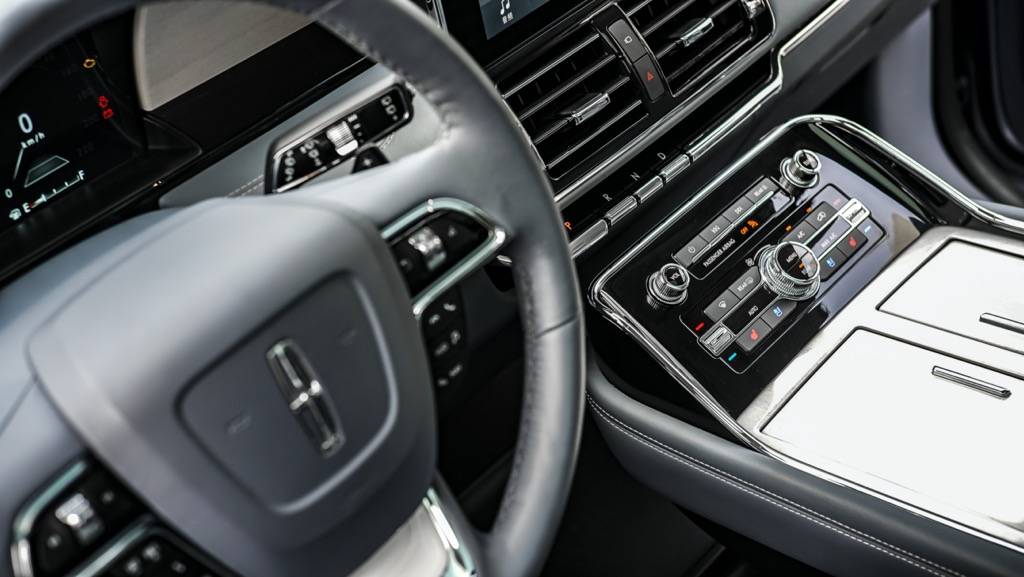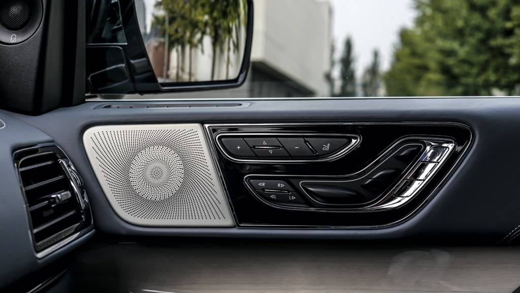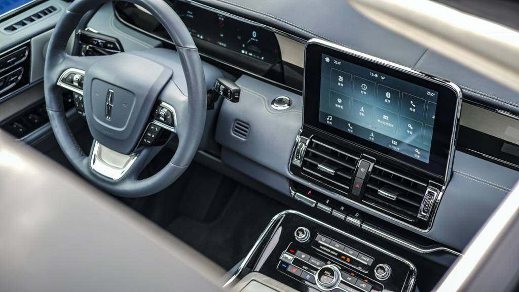 进入车内,环视一周,最让我印象深刻的是大量淡蓝色真皮和实木材料所给我带来极佳视觉感和触觉感的车厢,这也很好的诠释了什么是美式豪华,而30向电动调节座椅也让用户体验上升到了一个新的层次。中控部分,全液晶仪表以及大尺寸中控显示屏自然是必不可少的,大量的镀铬饰件也很好的提升了内饰的质感。除此之外,在细节之处,全新林肯领航员还在乘客前方的实木装饰件上添加了林肯的LOGO,这样的小细节,也为该车在豪华之外增添了一丝仪式感。