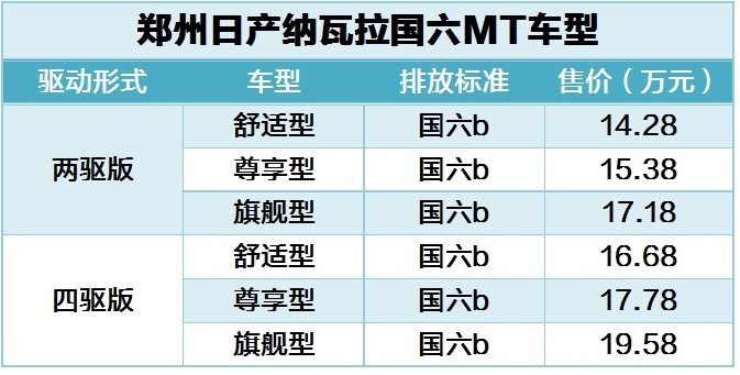 纳瓦拉国六MT车型在9月底正式发售,售价14.28万—19.58万元。