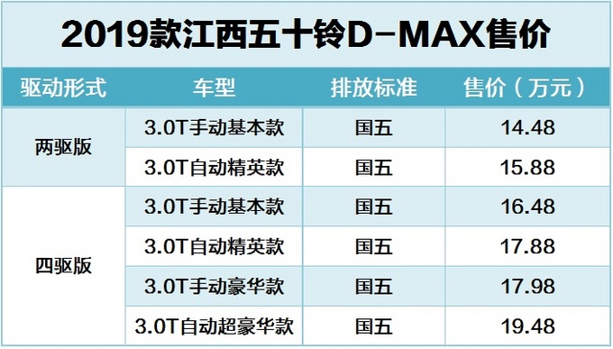 2019款D-MAX在年中刚刚发售,售价14.48万-19.48万元。