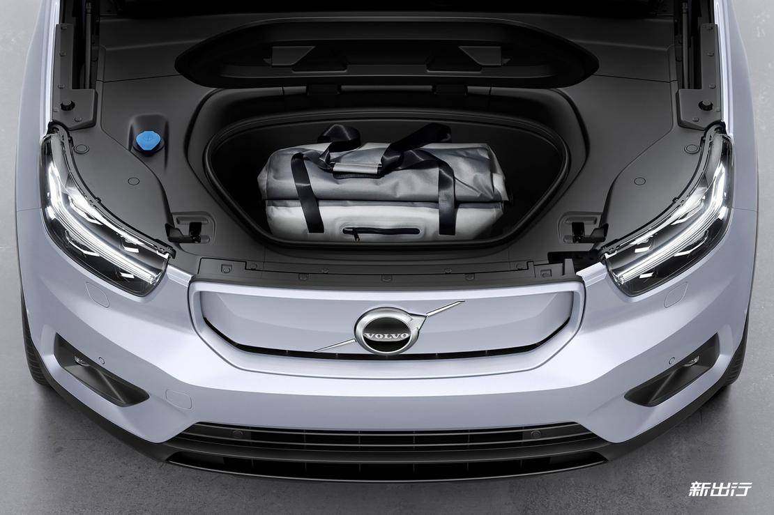 沃尔沃标志性的雷神之锤日间行车灯在纯电动版车型上沿用,由于纯电动车型并不需要内燃机,新车在前机舱设计了容量约 30 升的前备厢。