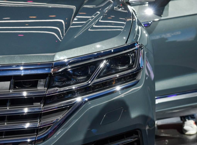 大众途锐外观造型还是比较熟悉的大众风格,采用大众家族化设计理念,配备横幅式进气格栅,用粗壮的镀铬饰条进行装饰,与两侧大灯交接,拉宽前脸的视觉效果。下方采用贯穿式进气口,两侧扰流口非常宽大,中间用镀铬饰条横贯修饰,带来很强视觉冲击效果,整个前脸看起来霸气十足。