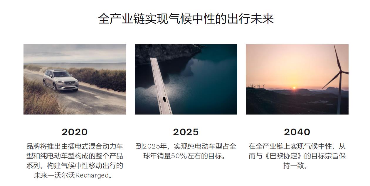 在沃尔沃全新发布的“2040环境计划”中显示,其力求在2040年之前将公司发展成为全球气候零负荷标杆企业,实现碳中和。