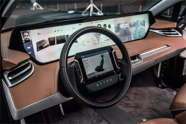 这款车最大的亮点就在于M-Byte以首次应用于量产车的48英寸4k共享全面屏,这块大屏让拜腾M-Byte拥有了超前的科技感和未来感实现多维度交互,开启你的数字会客厅模式;方向盘中央集成的触控屏会根据环境光照的变化来调整明暗度。这款车的座椅还设计了旋转功能,M-Byte前排的BYTON Orbiters旋转座椅可向内旋转10度,方便车内乘客交流;前排座椅背部均配备了大尺寸的独立屏幕;而且通过BYTON ID还可以上传记录你的个性化座舱设置,贴心的科技让生活更有趣味。