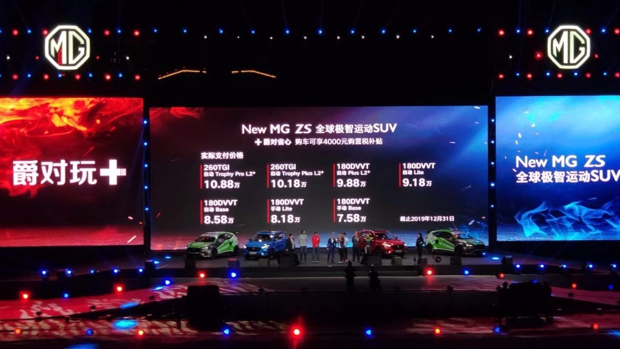在之前的成都车展上,名爵正式亮相了大改款后的小型SUV-全新ZS。10月17日晚在南京的江宁体育中心,全新ZS正式上市,新车共推出7款车型,售价7.58--10.88万元。动力方面换装了全新的1.3T发动机,产品力究竟如何,我们一起来看。