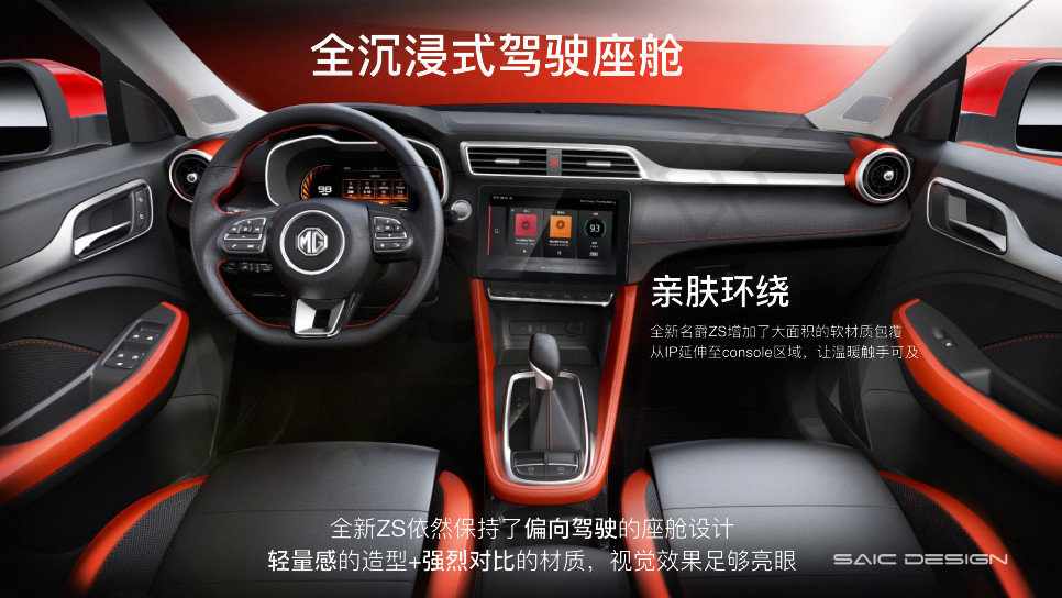 内饰部分采用了偏向驾驶座的座舱设计,黑红的配色更显年轻,材质方面相比老款,从IP延伸至console区域增加了大面积的软性包覆,软包碳纤维纹理皮革和红色缝线也加入其中,质感提升非常多,配置方面则加入了全液晶仪表以及10.1英寸的中控屏幕,同级别也是少有的。而提到上汽就不得不提“斑马”,全新名爵ZS采用了斑马智行3.0系统,可以实现中英文混合语音识别、阿里智慧生态服务等互联科技,还全面接入饿了么、淘票票等应用,在车上就能帮你点外卖,订电影票,可以说非常智能了。